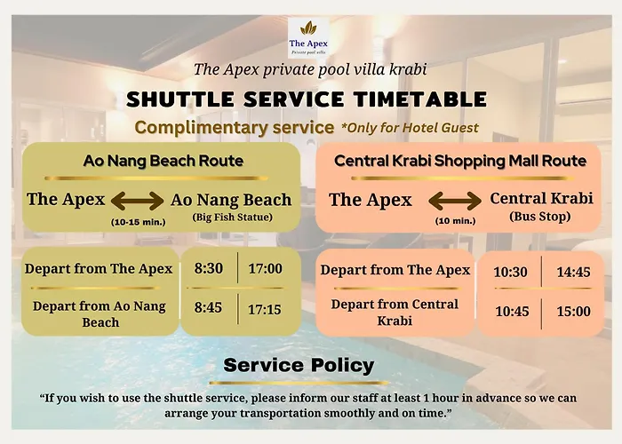 สนามบินที่ใกล้ที่สุดคือสนามบิน ท่าอากาศยานนานาชาติภูเก็ต ซึ่งอยู่ห่างออกไป 155 กม. จาก The Apex Private Pool Villa Krabi ผู้เข้าพักยังสามารถผ่อนคลายในสระว่ายน้ำได้
